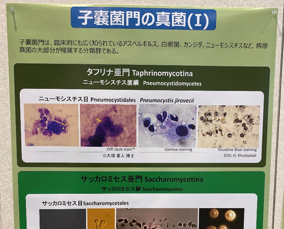 またカビについてポスターでも説明がされていましたが、免疫不全の患者さんの肺炎の原因となるため私たち呼吸器の医者にはおなじみの「ニューモシスチス・イロベチ(Pneumocystis jirovecci)」のポスターを見たら写真提供が以前に一緒に働いていたK総合病院のO先生だったので、この世界の狭さを感じずにはおられませんでした。