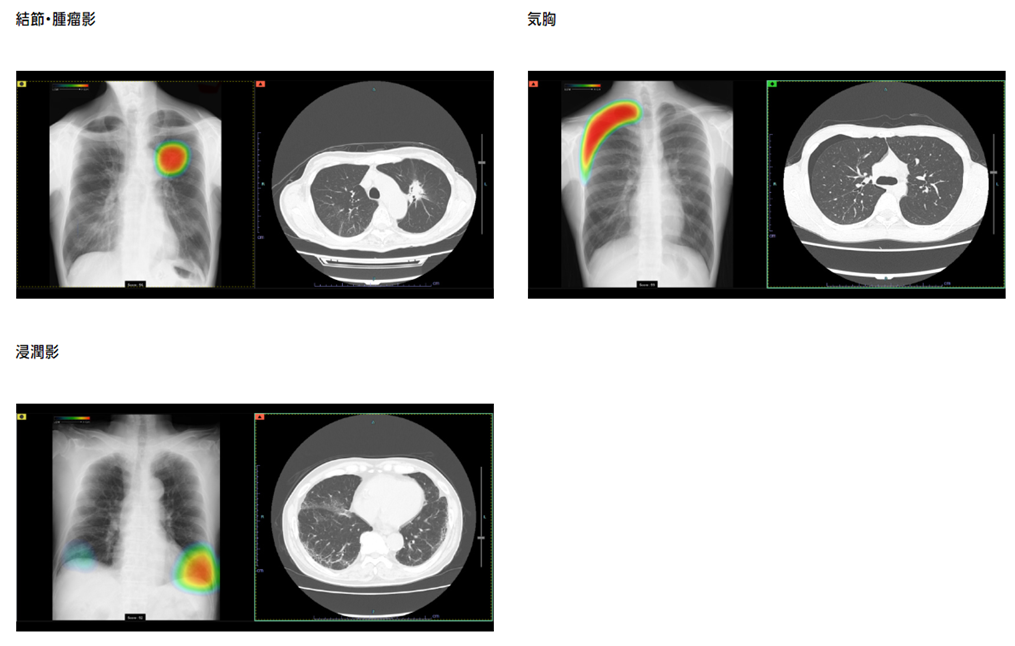 一方で胸部レントゲンではがんを疑う結節影だけでなく、肺炎や肺結核、肺気腫、間質性肺炎、気胸などいろいろ異常な影を診断する必要があります。AIによっては陰影が「ある、なし」だけでなく質的な診断もできる様になってきました。私のクリニックも富士フィルムの画像診断システム(PACS)に胸部X線画像病変検出ソフトウエアである「CXR-AID」を導入することになっており、結節・腫瘤、浸潤影(肺炎などで見られる広がりのある陰影)、気胸(肺の表面に穴があいて、肺と胸壁の間に空気が漏れて肺が潰れた状態)の3種類の病変が検出可能とされています。